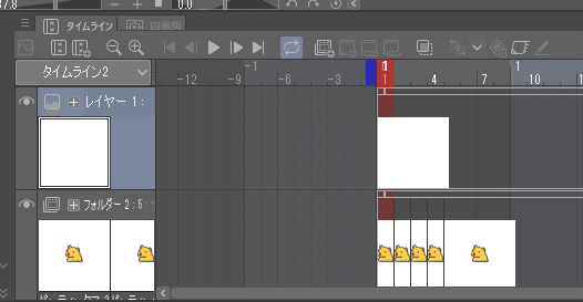 それにあたり、「アニメーションタブ」内の「アニメーションセル表示」から、「オニオンスキンを有効化」すると前後の絵が透けて見えるようになるので、こちらも活用するとよりやりやすいかもしれません。