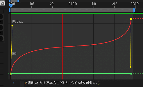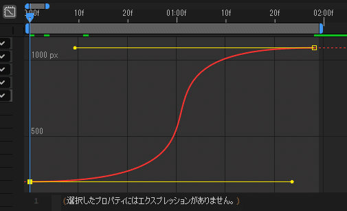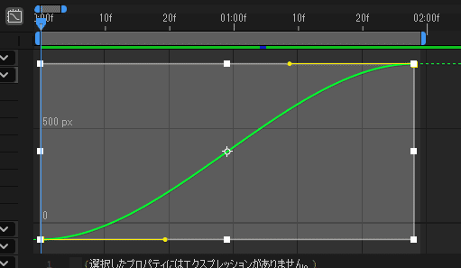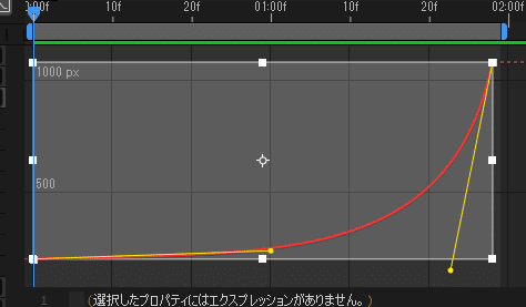 さて、イージングを自分で編集していくにあたり使っていくのが、黄色い線こと「ベジェハンドル(以下、ハンドル)」です。イージーイースを選ぶと両側にハンドルが出ていじりやすいため、自分で編集する場合はイージーイースを選ぶようにしてください。