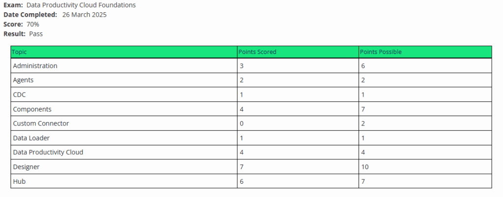 内容はMatillionDPC(Data Productivity Cloud)というSaaS版のMatillionに関する基礎を問うような試験となっています。