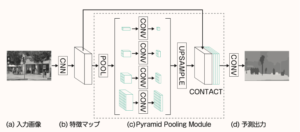 セマンティック・セグメンテーションでは、物体の局所的な特徴だけでなく、画像全体の部脈情報(グローバルコンテキスト)が利用可能であることも重要です。この課題に対して提案されたのがPSPNet(Pyramid Scene Parsing Network)です。